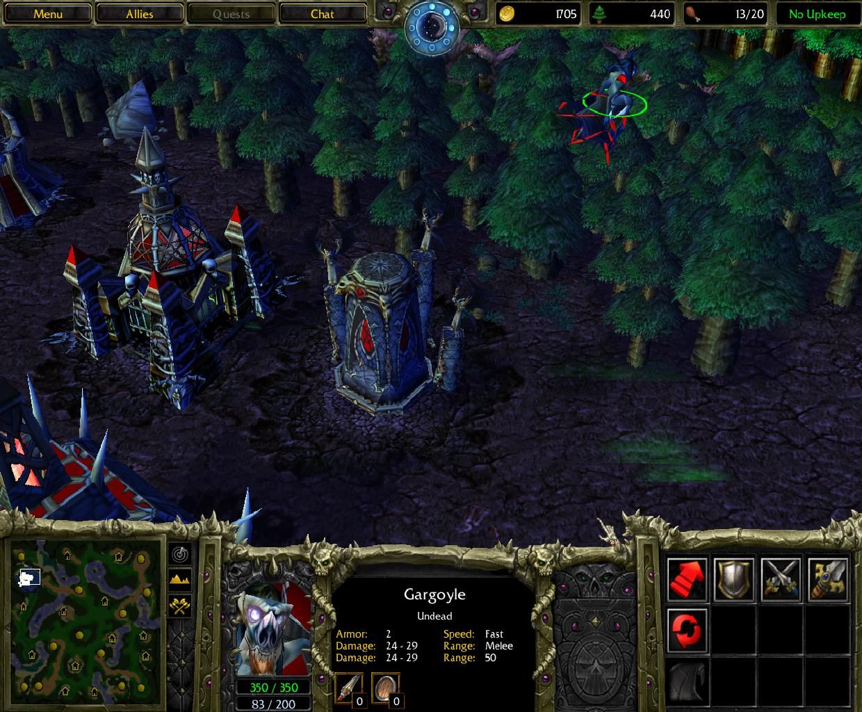 Старый скрин с Gargoyle Spire удалил(ибонех). Гарга была очень мощным юнитом воздух-земля(воздух-воздух - не очень в связи с melee атакой: тогда воздух не кучковался), стоила за 330 голда + немного леса и жрала 4 лимита.
